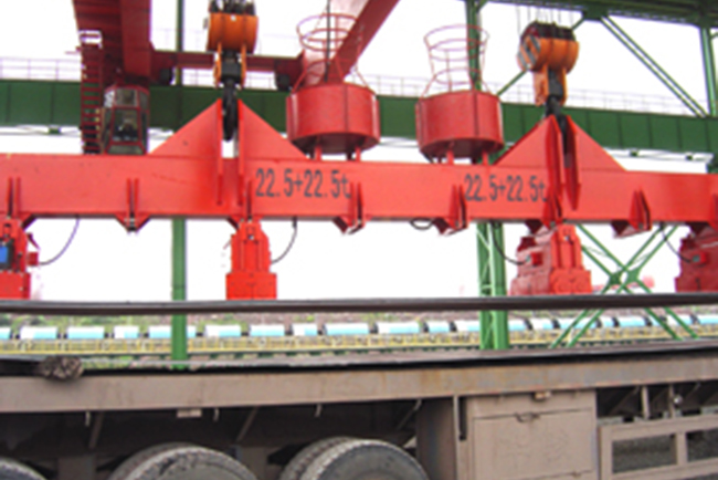 兩臺以上起重永磁鐵組合工作時,起重永磁鐵需懸掛于吊梁上(吊梁有固定型和伸縮型),吊梁再懸掛于行車吊鉤上。